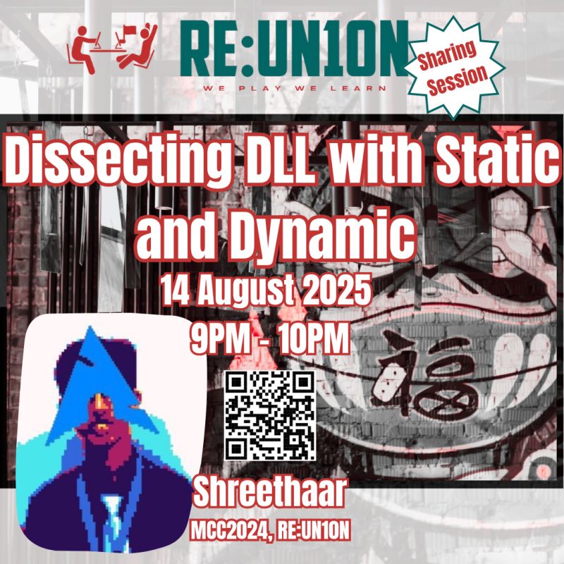 As part of our renewed effort to spotlight technical sharing from our RE:UN10N CTF players and MCC alumni, we kicked off our latest online session with a deep dive into DLL analysis, led by none other than Shreethaar —an MCC alumnus and active contributor to the RE:UN10N CTF scene.